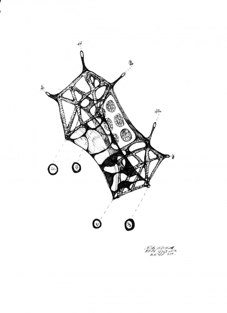 TENSILE SKIN AS MEDICINAL PLANT APPARATUS, Architectural Bone Species (9.096xi). Black Indian Ink. Y. Agbo-Ola 2020. Image courtesy of Olaniyi Studio.