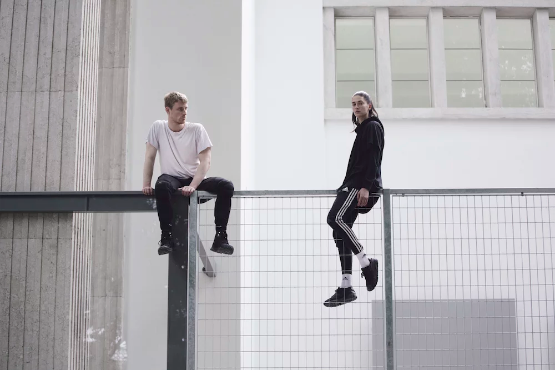 I've been trying to find my place within this new sartorial landscape, but I still can’t help feeling slightly uncomfortable dressing comfortably in a place that sells cocktails. Until a few years ago, you could only wear sweatpants to clubs if they were by Rick Owens or Damir Doma and you looked convincingly avant-garde. Now, athleisure has its own Wikipedia page, including detailed coverage of market shares. A version of athleisure also featured prominently at the 2017 Venice Art Biennale, where the artist Anne Imhof was awarded the Golden Lion for her operatic piece Faust in the German Pavilion. Amidst a forbidding installation complete with barking Rottweilers, her performers writhed around each other, sang, and stared moodily at spectators from their perches on chain-link fences and glass platforms (caveat #2: I didn’t actually see it in person). And yet, if this cast of attractive youths — dressed in sneakers and sports socks, Adidas track pants, and shorts embellished with the FC Bayern München logo — was supposed to inhabit a kind of dystopia, they made it look alarmingly desirable, healthy, and aesthetically fashionable.