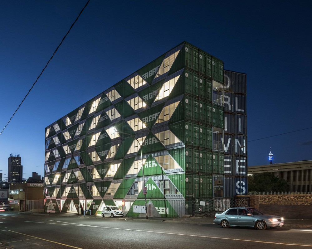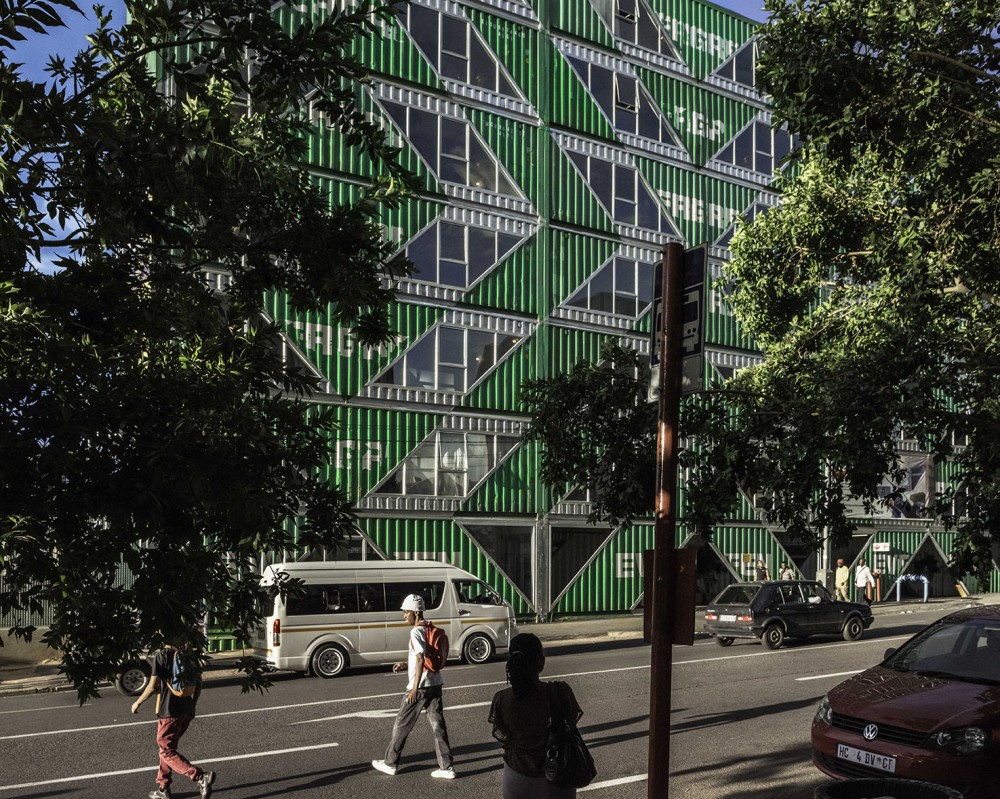 View of the LOT-EK-designed building in the historic Maboneng district.
