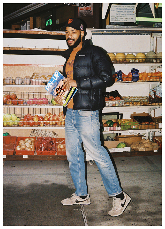 Skype Williams photographed by Kevin Buitrago with a copy of PIN–UP’s “Home” issue.