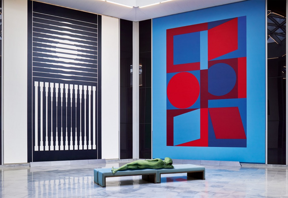 Soon his art was everywhere: on TV studio sets and book and album covers (Bowie’s Space Oddity), in films and open-air sculptures, on cars and garages via his Renault-logo redesign, and also on buildings, both inside and out. It was only a matter of time before Vasarely turned his hand to architecture itself.