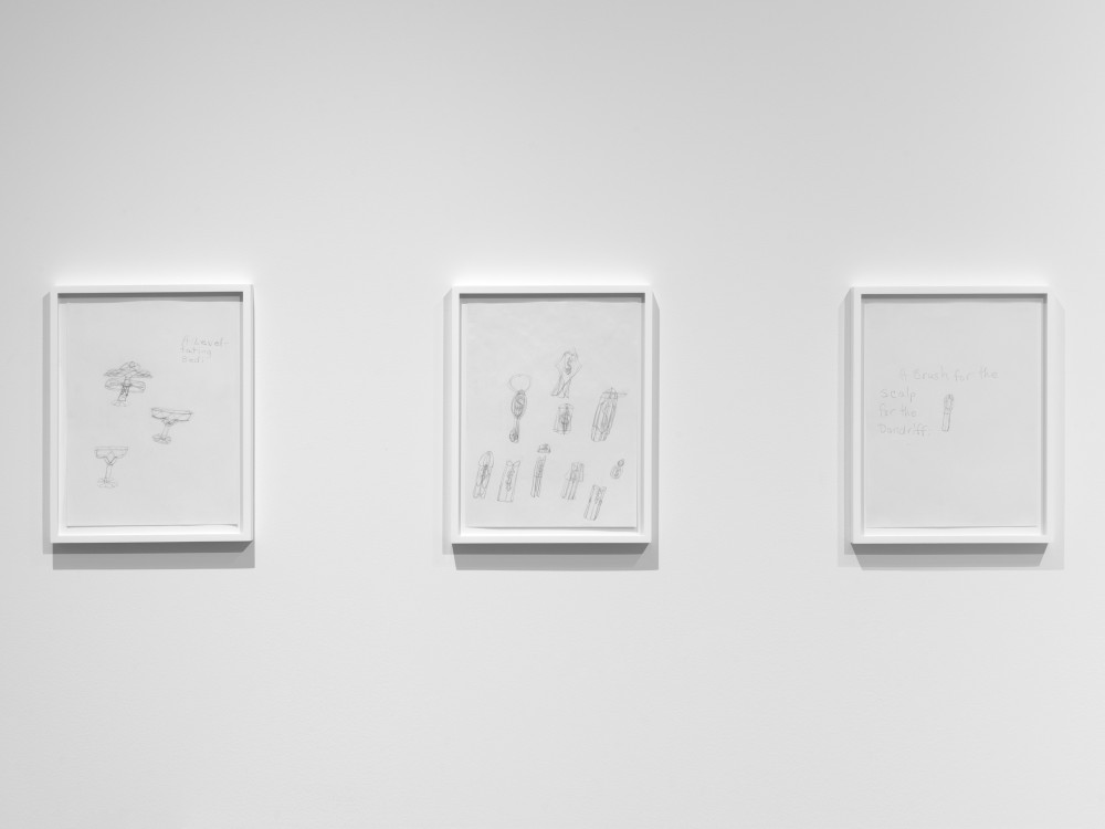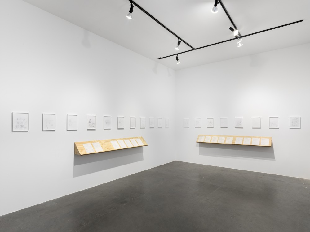 Drawings by the artist's mother Patricia Satterwhite included in You're at home, Pioneer Works, New York. © Dan Bradica