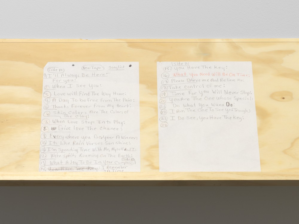 Lyrics written by the artist's mother Patricia Satterwhite included in You're at home, Pioneer Works, New York. © Dan Bradica