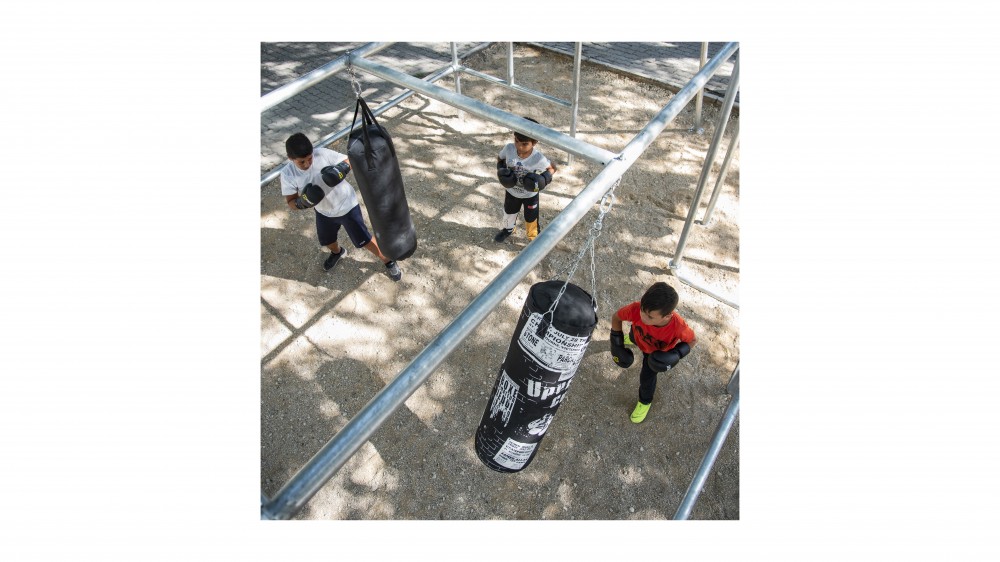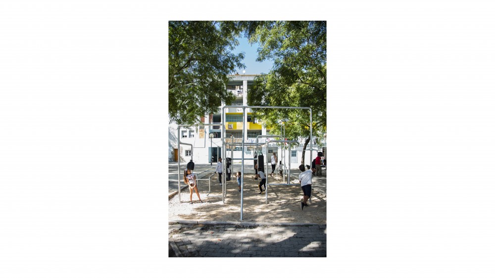 In addition to the five big shows, there were many ancillary events and installations at the triennial — far too many to list here. But one in particular stood out, since it perfectly illustrates the overall theme. In a crumbling housing project out at Olaias which, due to an administrative anomaly, has essentially been abandoned to the care of its impoverished inhabitants for the past 30 years, Mexican architect Daniel De León Languré has installed Boxing Boxes, a sort of jungle gym made out of welded scaffolding poles from which various sizes of punching bags have been suspended at different heights. Whatever one’s feelings about boxing as a sport — for De León it’s “a tool of self-discipline” that “channels violence” to become “part of the civilizing process” — there’s no denying that the installation has been an instant hit with kids of all ages living at the housing project, who have absolutely no other play facilities on offer. Built for a mere 6,000 euros, it elegantly, economically, and radically transforms the courtyard where it stands through what De León describes as an act of “urban acupuncture.” A simple yet highly effective poetics of reason, it proves that in architecture two plus two can indeed make rather more than just four.