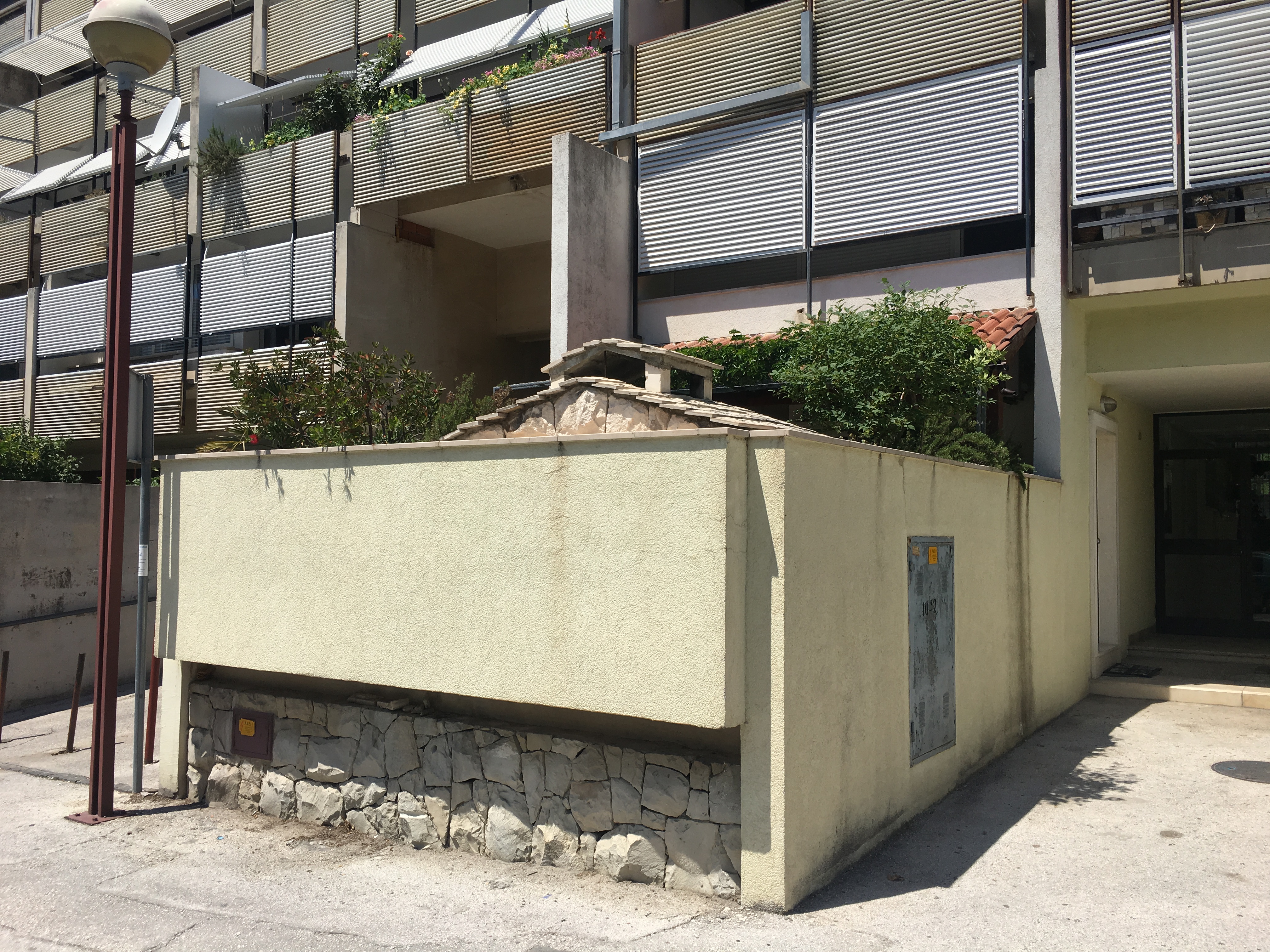 Of all the garden fireplaces I have encountered, the most surprising ones aren’t in Croatia, nor improvised interventions. They are in Ljubljana, Slovenia, built into the base of an unassuming 12-story housing block from the 1960s. Spanning the 90-degree inside corners at 45-degree angles and cast from the same structural concrete as the rest of the building, the oven hood resembles a sloped sun visor. Inside, they are black with soot. I spotted them by chance while riding a bike along the river that cuts a gentle course through the capital city. Recently, deciding I wanted more information, I contacted an Airbnb host named Nada who advertises an apartment in the building. In her reply, he explained nothing about the fireplaces, only that flats were given to affiliates of Yugoslavia’s secret police (UDBA), and that Melania Trump (née Melanija Knavs) is rumored to have spent a few nights there way back when. For now, like many other aspects of this tower, the story of the fireplaces shall remain a mystery.