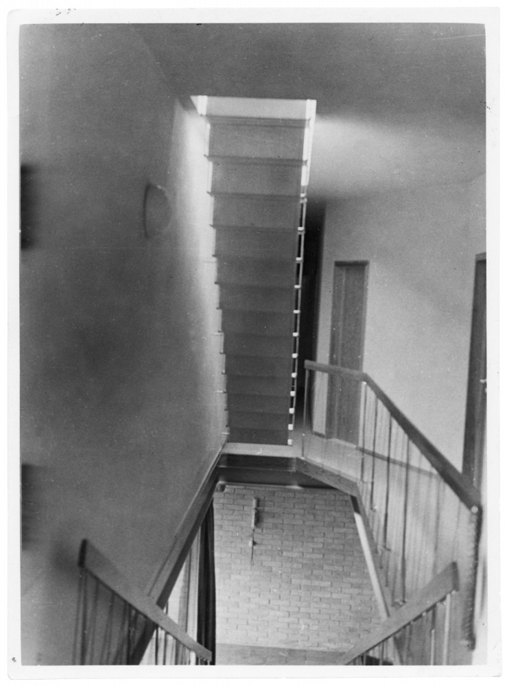 Inside the villa, a minimalist suspended steel staircase leads to the roof terrace. Photographer unknown (1935). Sigurd Lewerentz Collection; ArkDes Stockholm.
