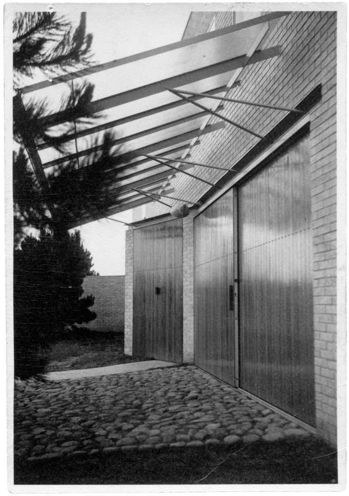 A double-door garage for the owner Knut Edstrand's cars, a luxury at the time. Photographer unknown (1935). Sigurd Lewerentz Collection; ArkDes Stockholm.